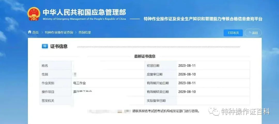 應(yīng)急管理部政府網(wǎng)站為全國(guó)特種作業(yè)人員操作證信息查詢系統(tǒng),